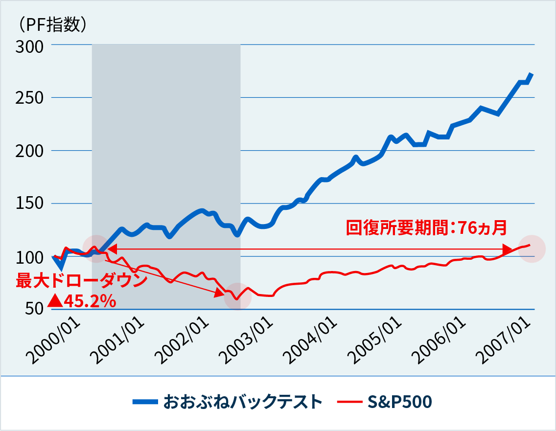 おおぶねの投資企業群は、過去のバブル後の下落局面においても下方耐性を示してきた。