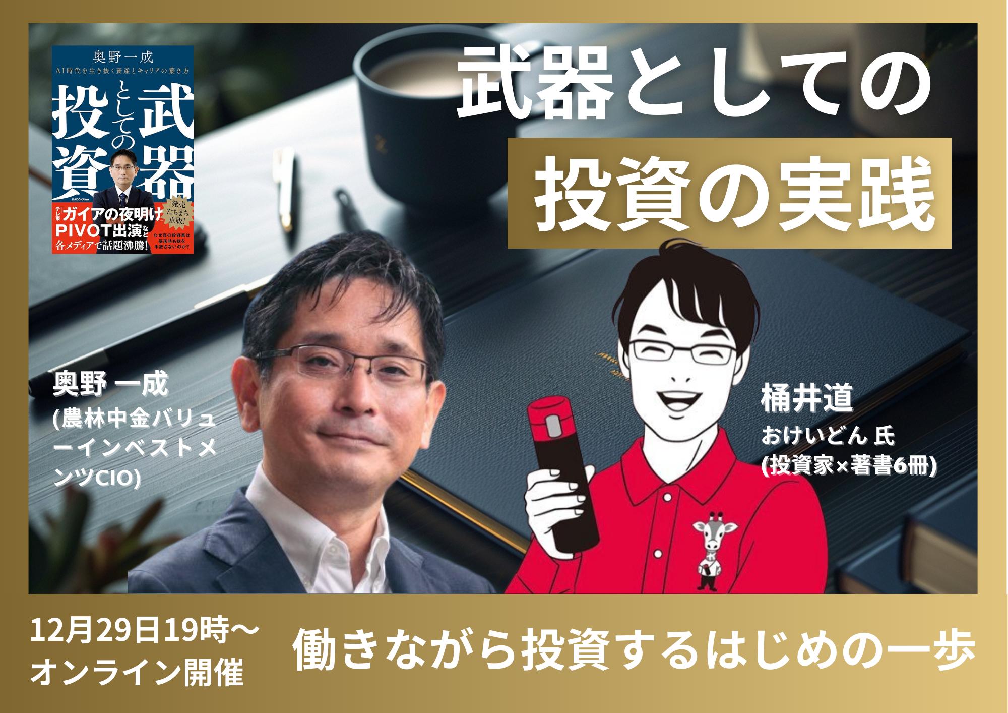 【12/29(月)19:00~開催】 桶井道(おけいどん)氏×奥野一成 特別対談 「武器としての投資の実践―働きながら投資するはじめの一歩」